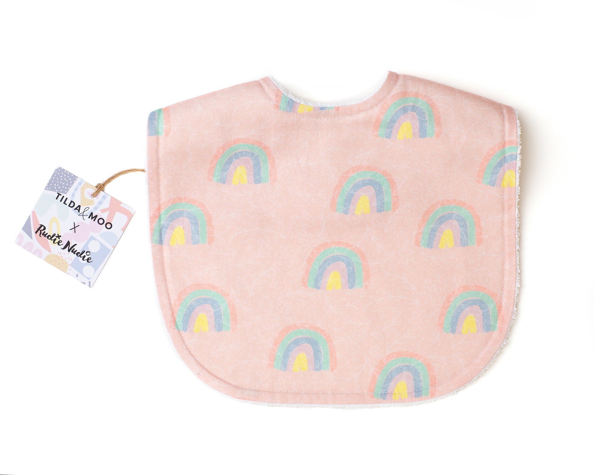 We have teamed up with our fave handmade bib brand, Tilda & Moo. They make the most beautiful quality bibs, and we are lucky to have a matching bib for our Whimsical Wonder playmat which was designed by Melbourne designer and mum, Trish Burton.